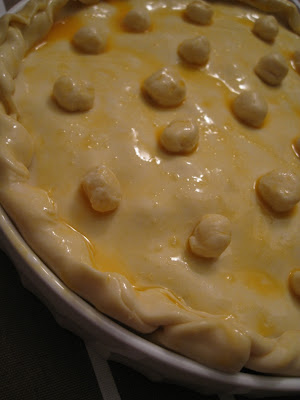 A Páscoa já passou e ainda ando às voltas com a reportagem do Dia do Pai!... Mas tenho de partilhar esta tarte, que é fantástica!... O recheio é muito suave e cremoso e a massa quebrada combina perfeitamente com os restantes sabores. Servi com um arroz branco (basmati) e uma salada de alface e rúcula temperada com vinagreta de balsâmico. Foi de comer e chorar por mais!...