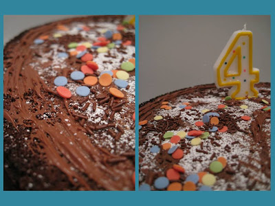 Este foi o Bolo que o D. levou para o colégio, para festejar com os amiguinhos o seu 4º aniversário. Pediu-me um Bolo de Chocolate e eu pensei neste, que é fácil, saboroso e não tem recheio ou cobertura. Ideal para as crianças comerem sem se sujarem em demasia! Um favor, portanto, a mim e às mães dos outros meninos! O R. levou, também a seu pedido, a Tarte de Côco da Criançada, cuja receita já aqui está.